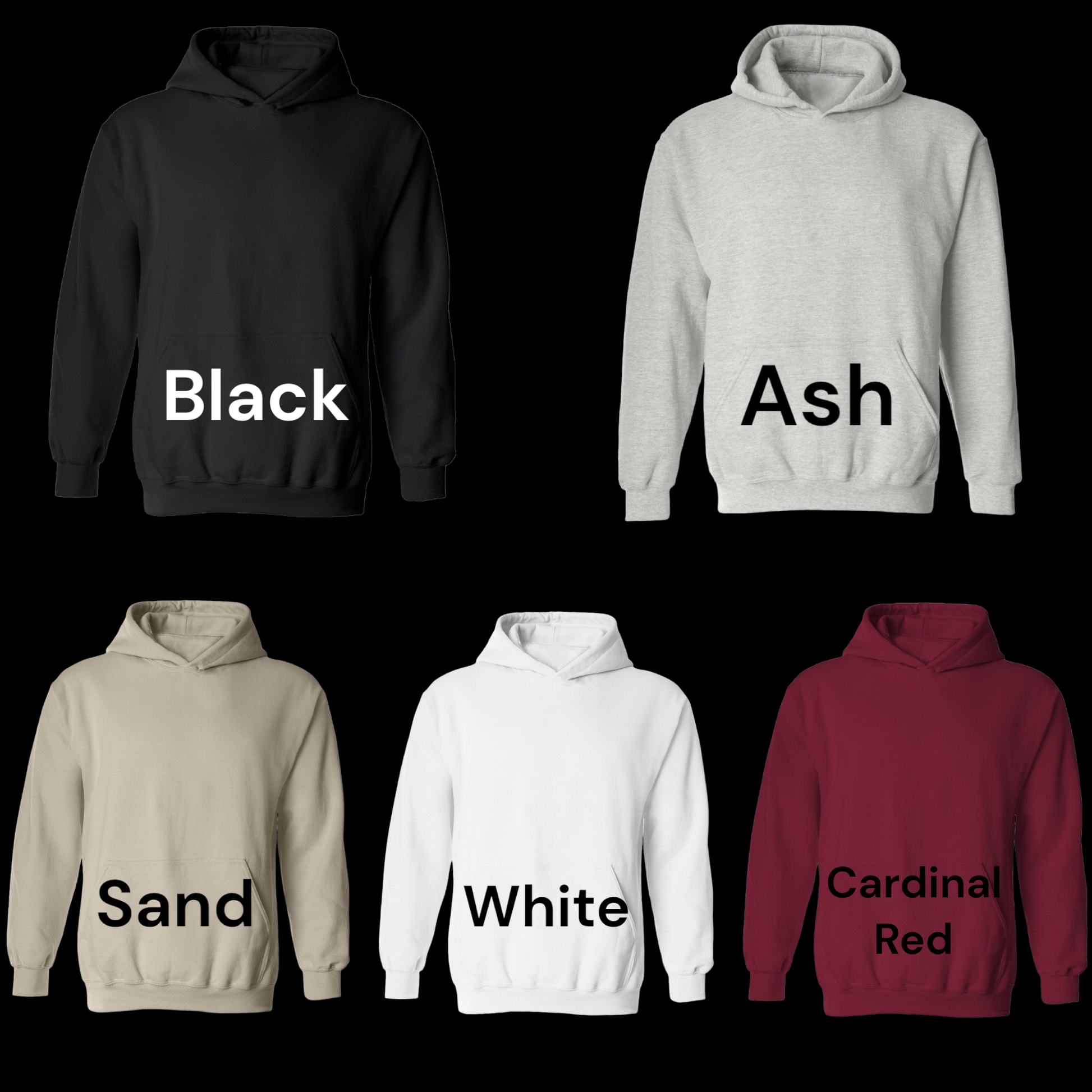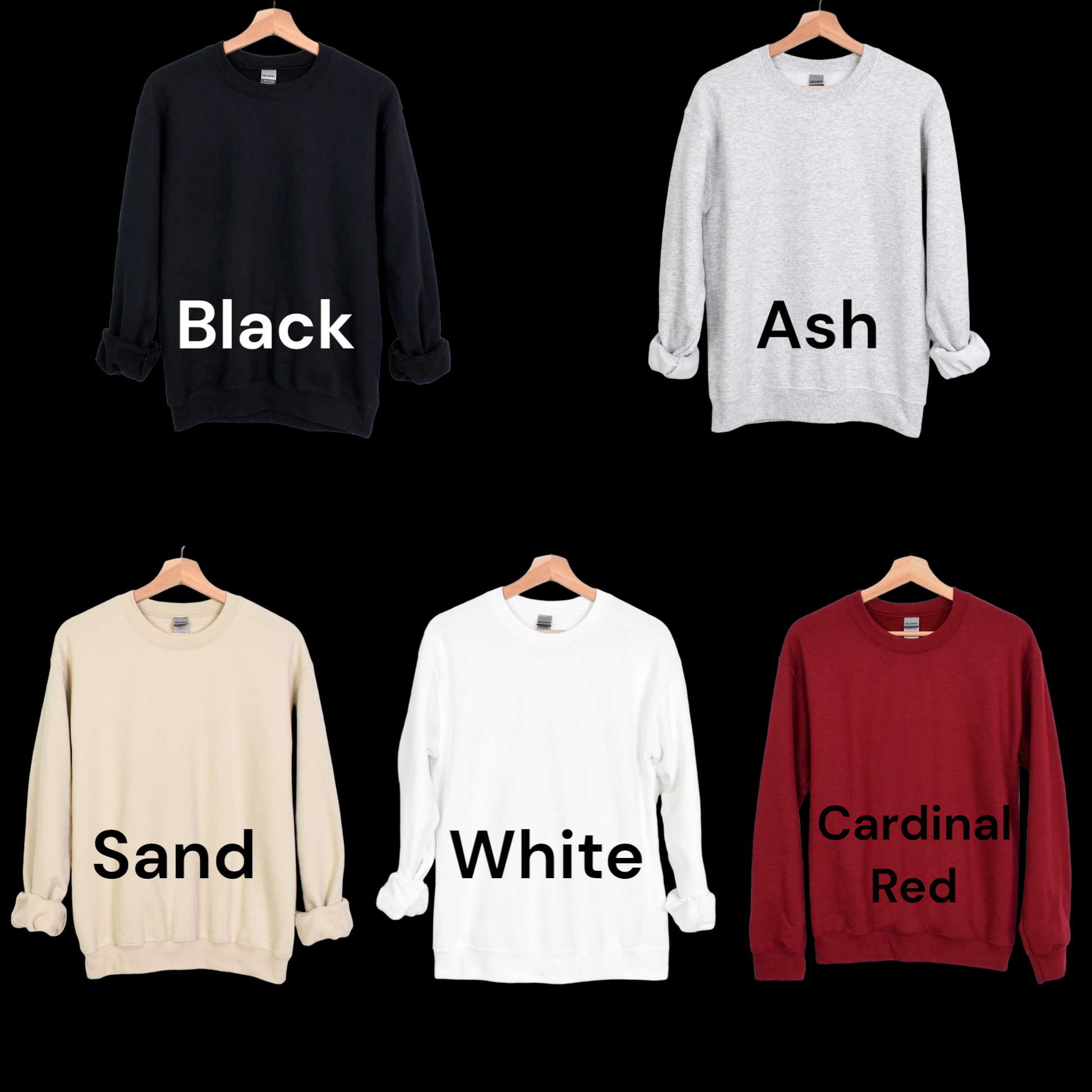 Ex.: White thread will go on black sweaters, Black thread will go on Cardinal Red sweaters